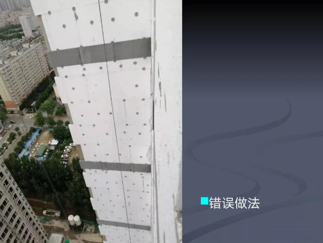 錯誤原因:保溫板豎縫未逐行錯縫,墻角未交錯互鎖。