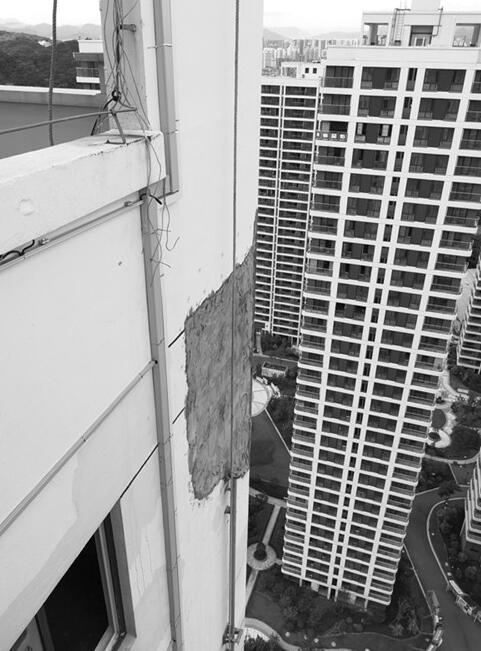 今年7月,小區(qū)陸續(xù)交付。王先生在小區(qū)內(nèi)查看時(shí)卻發(fā)現(xiàn)部分外墻有修補(bǔ)痕跡,“有些地方甚至還在脫落。”到了8月份,受臺(tái)風(fēng)及接連的雨水天氣影響,墻面脫落問(wèn)題愈加嚴(yán)重。“成塊成塊地掉落,大片外墻都裸露著,面積大的有好幾個(gè)平方米,地面上都是外墻掉落的碎石塊。”王先生說(shuō),墻皮厚度約1厘米,從高處掉落萬(wàn)一砸到人,后果不堪設(shè)想,“小區(qū)陸續(xù)交付,很多業(yè)主已在裝修,小區(qū)里每天都有人出入,這種‘定時(shí)炸彈’一樣的墻體怎么能讓人放心?”