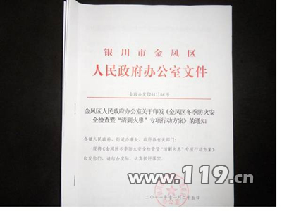 進一步深化消防安全“五大”活動,全面推進“清剿火患”戰役,有效預防和減少各類火災事故的發生,堅決遏制重特大火災尤其是群死群傷惡性火災事故,確保寧夏銀川市金鳳區冬季消防安全形勢平穩,近日,銀川市金鳳區人民政府下發了《冬季防火安全檢查暨“清剿火患”專項行動方案》,全面部署開展冬季防火安全檢查暨“清剿火患”專項行動。