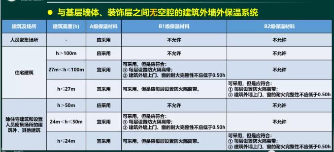 建筑外墻保溫系統的防火技術要求是什么?兩個表看懂