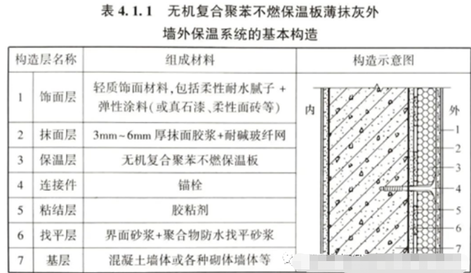 值得注意的是,它的養護齡期不應低于28d,這是該保溫系統材料的一個重點內容。因為這個保溫材料是有需陳化的聚苯顆粒和需養護的水泥膠凝材料構成,所以出廠后需要陳化、養護,這是不同于巖棉的地方。聚苯顆粒熱脹后會有一個冷縮的過程,水泥膠凝材料也有一個水化反應的過程,如果齡期達不到28d,可能會對系統產生一定的破壞應力,導致后期系統開裂。
