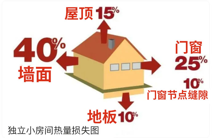 這是因?yàn)楦G洞四周及頂子都很厚,能很好的保溫隔熱。然而隨著現(xiàn)代建筑材料、建筑技術(shù)的普及,那些清一色的紅磚、鋼筋混凝土的房屋成為了建設(shè)的主流,這些房屋既結(jié)實(shí)耐用,又方便快捷,深受人們的歡迎。然而不知為何卻忽視了房子的保溫、隔熱這件事。有的是不知道,有的是覺(jué)得麻煩沒(méi)必要,有些覺(jué)得浪費(fèi)錢,其實(shí)這樣的想法是不可取的。為什么這么說(shuō)呢?我們不妨了解下一間房子的熱量都損失在哪了吧。