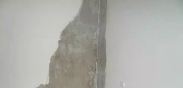 分析:墻面空洞很明顯是由于建造時(shí)在刷墻階段混入了垃圾造成的,可以看見(jiàn)里面有廢棄的鐵絲。