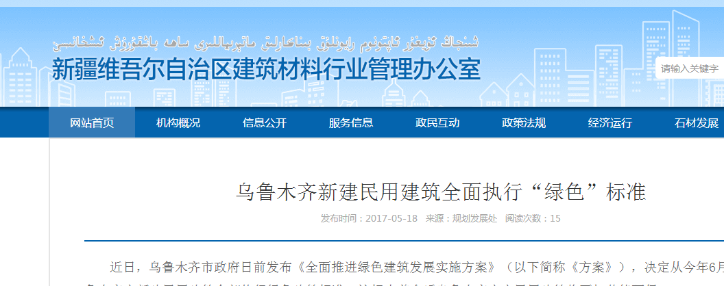 近日,烏魯木齊市政府日前發(fā)布《全面推進綠色建筑發(fā)展實施方案》(以下簡稱《方案》),決定從今年6月1日起,烏魯木齊市新建民用建筑全部執(zhí)行綠色建筑標準。這標志著今后烏魯木齊市市民用建筑將更加節(jié)能環(huán)保。